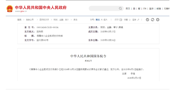 保障中小企業(yè)款項支付條例(2020年7月5日中華人民共和國國務(wù)院令第728號公布 2025年3月17日中華人民共和國國務(wù)院令第802號修訂) 第一章 總 則 第一條 為了促進(jìn)機(jī)關(guān)、事...
