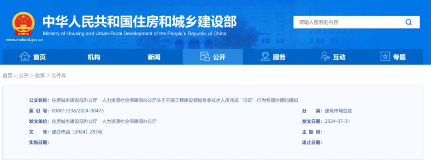 新政 | 住建部:嚴查工程建設領域專...