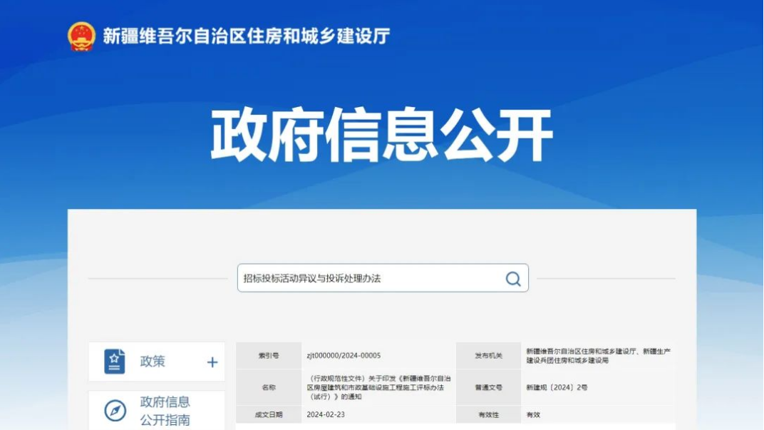 近日,新疆維吾爾自治區(qū)住房和城鄉(xiāng)建設(shè)廳、新疆生產(chǎn)建設(shè)兵團住房和城鄉(xiāng)建設(shè)局印發(fā)《新疆維吾爾自治區(qū)房屋建筑和市政基礎(chǔ)設(shè)施工程施工評標辦法(試行)》(以下簡稱《施工評...