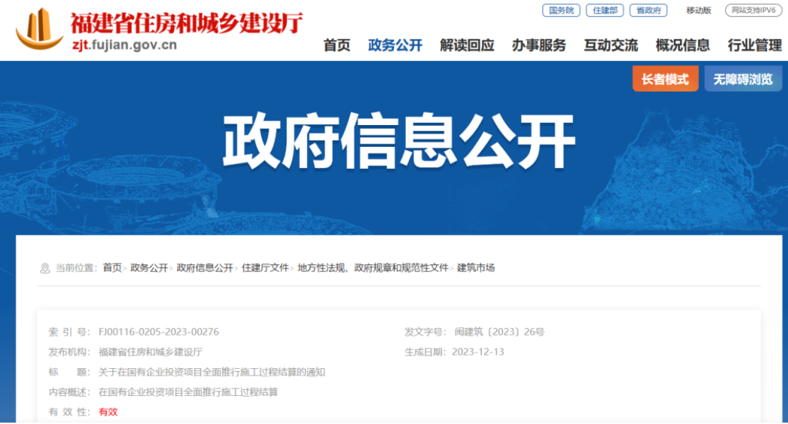 關(guān)于在國(guó)有企業(yè)投資項(xiàng)目全面推行施工過(guò)程結(jié)算的通知 閩建筑〔2023〕26號(hào) 各設(shè)區(qū)市建設(shè)局、國(guó)資委,平潭綜合實(shí)驗(yàn)區(qū)交建局、國(guó)資局: 為貫徹落實(shí)《國(guó)務(wù)院辦公廳關(guān)于全面...