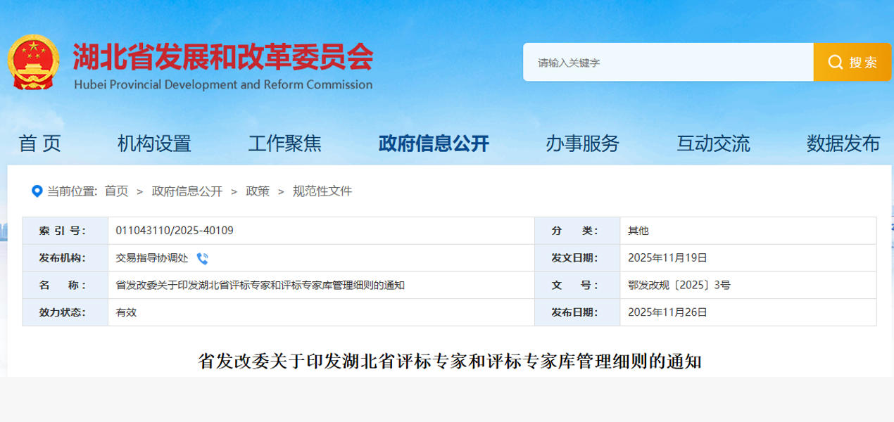 湖北省發(fā)改委印發(fā)評標專家和評標專...