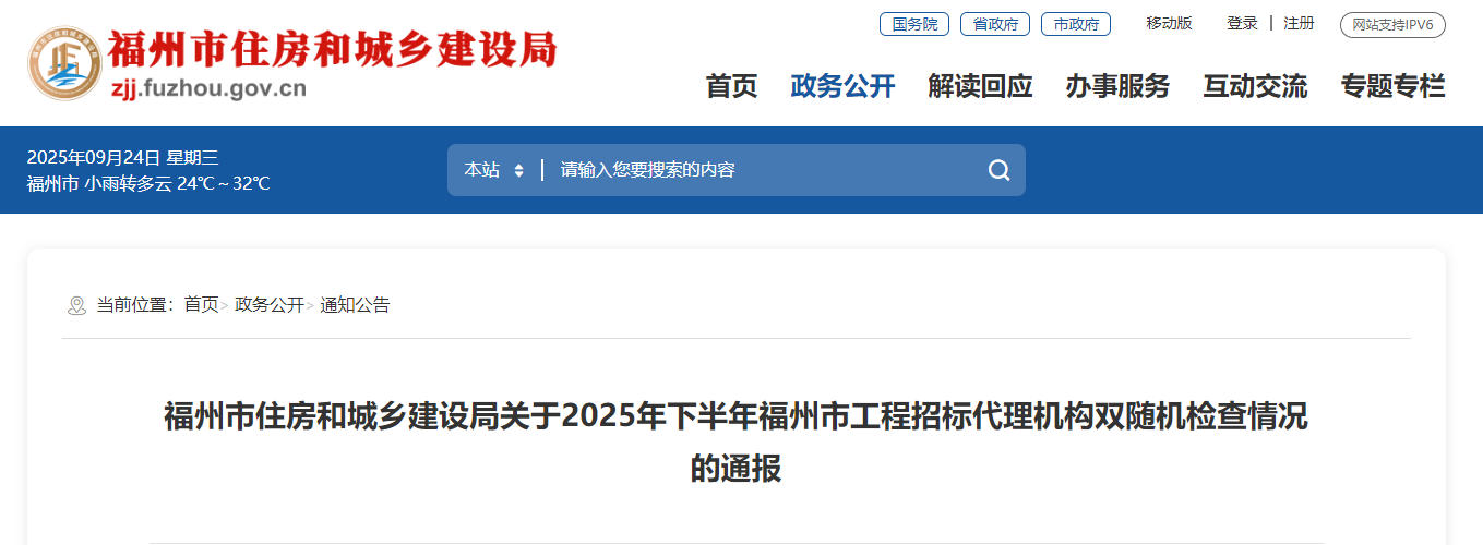各有關單位: 根據《福建省房屋建筑和市政基礎設施工程招標代理機構管理辦法》(閩建〔2025〕2號)相關要求,我局隨機抽取18家2024下半年和2025上半年在我市開展依法必須招標項...