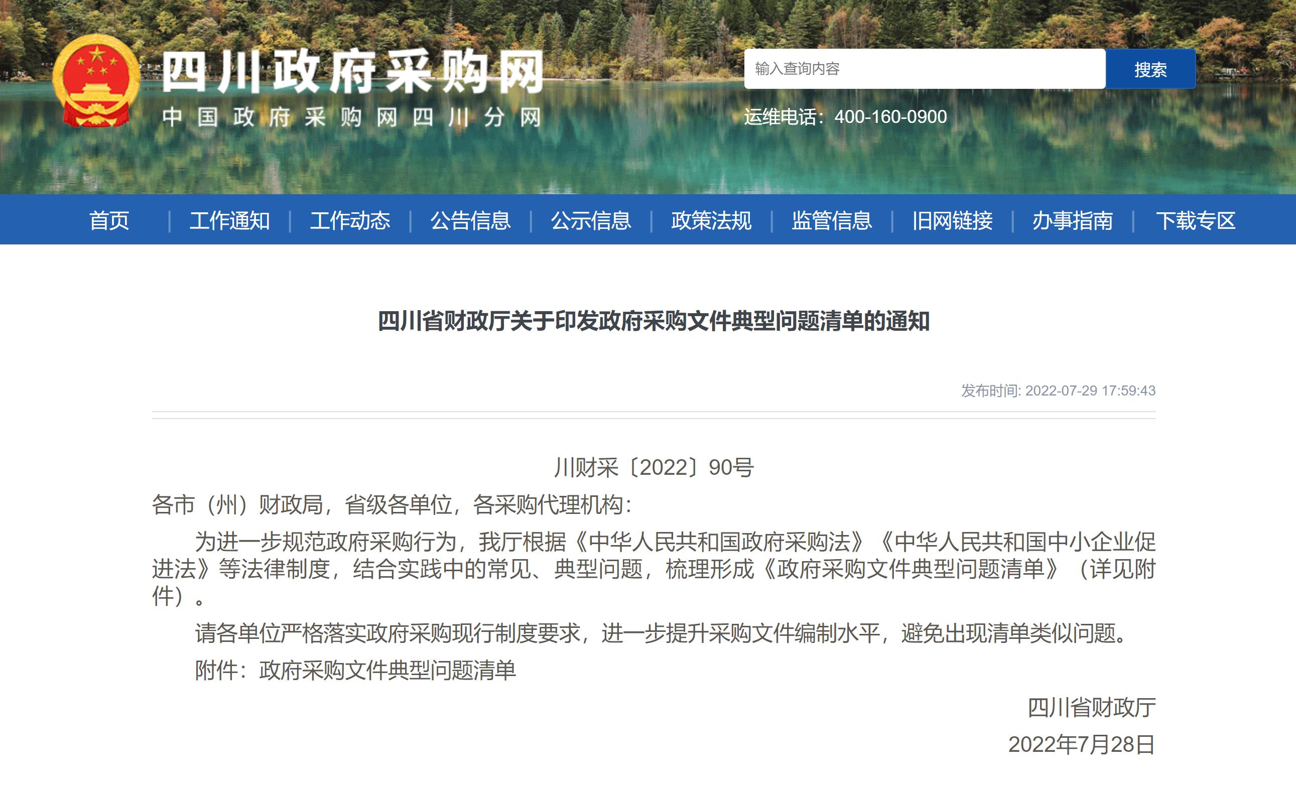 近日,四川省印發(fā)《政府采購文件典型問題清單》(以下簡稱《清單》),要求各單位嚴(yán)格落實政府采購現(xiàn)行制度要求,進(jìn)一步提升采購文件編制水平。