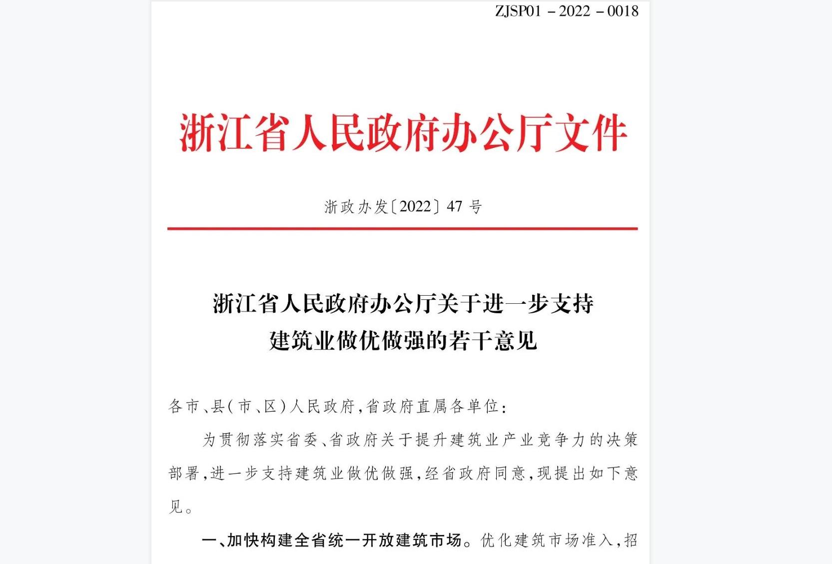 7月20日,浙江省人民政府辦公廳發(fā)布《關(guān)于進(jìn)一步支持建筑業(yè)做優(yōu)做強(qiáng)的若干意見(jiàn)》,《意見(jiàn)》提出:要減輕建筑業(yè)企業(yè)負(fù)擔(dān)。全面推行保證保險(xiǎn)、銀行保函替代現(xiàn)金繳納投標(biāo)、履約、工程質(zhì)量、農(nóng)民工工資等保證金,加快推行電子保...