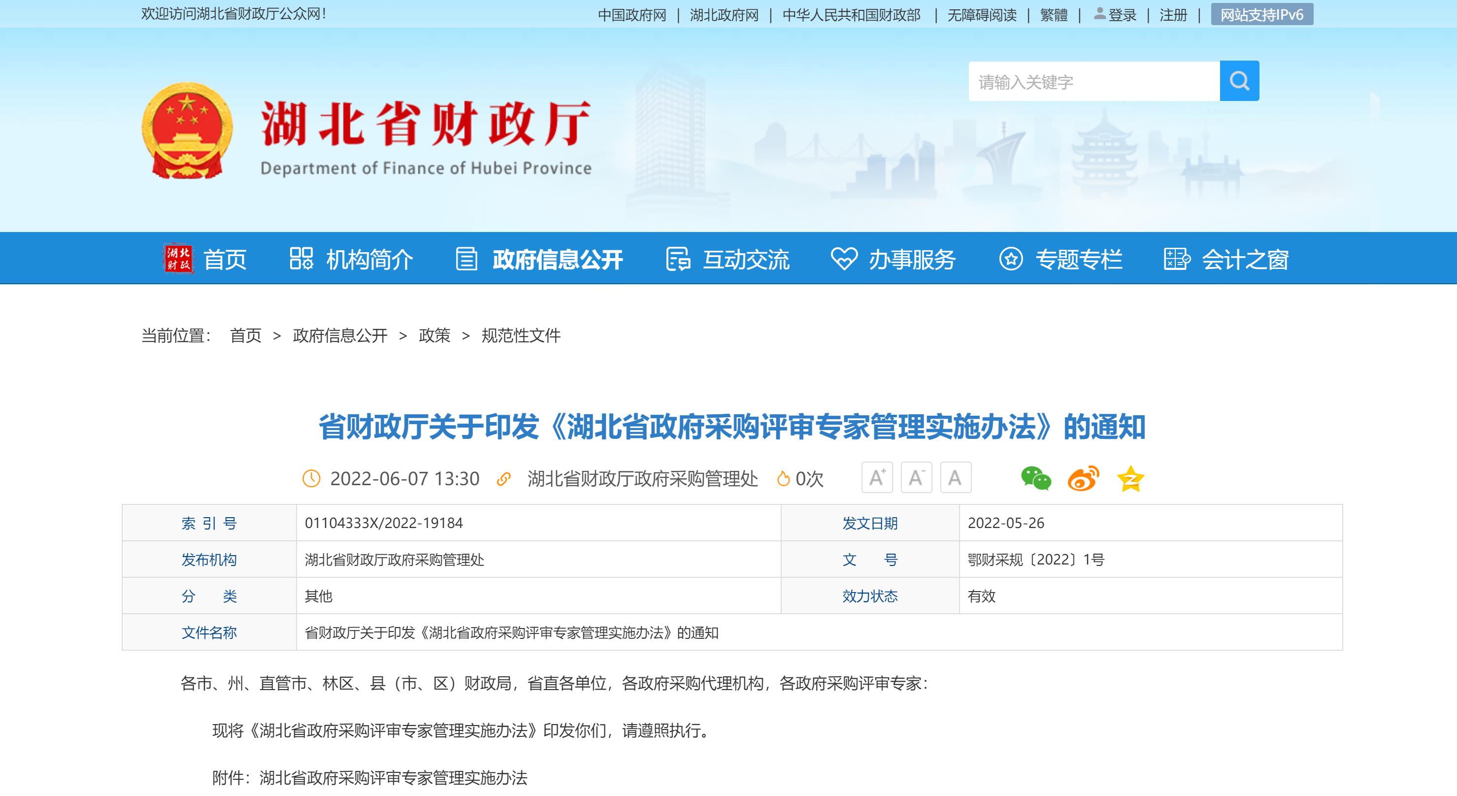 財(cái)政廳 | 湖北評(píng)審專(zhuān)家管理“升級(jí)...