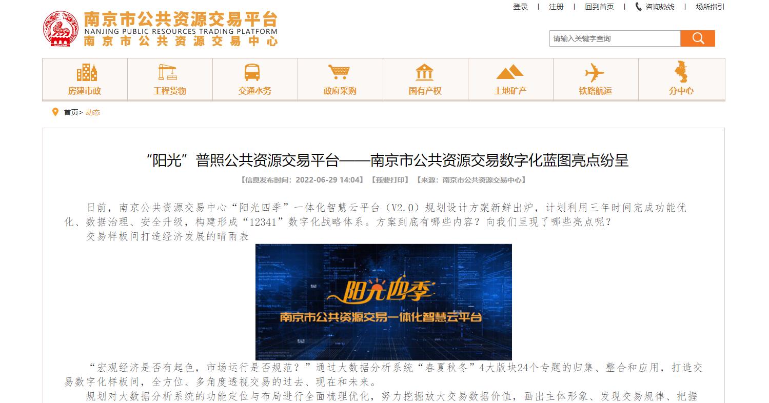 近日,南京市公共資源交易中心“陽(yáng)光四季”一體化智慧云平臺(tái)(V2.0)項(xiàng)目規(guī)劃設(shè)計(jì)方案(以下簡(jiǎn)稱方案)出爐,為推動(dòng)南京市公共資源交易領(lǐng)域數(shù)字化轉(zhuǎn)型升級(jí),實(shí)現(xiàn)公共資源交易“一網(wǎng)統(tǒng)管”擘畫(huà)了藍(lán)圖路線。...