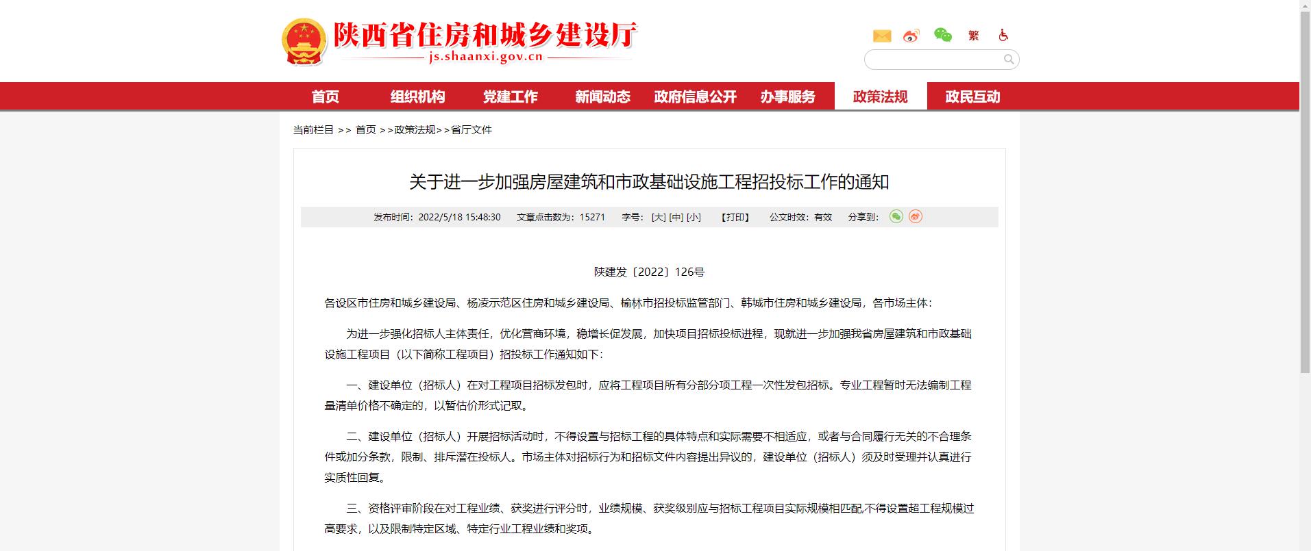 5月18日,陜西省住建廳發(fā)布《關于進一步加強房屋建筑和市政基礎設施工程招投標工作的通知》,明確:項目經(jīng)理、總監(jiān)理工程師中標后不得擅自更換。...